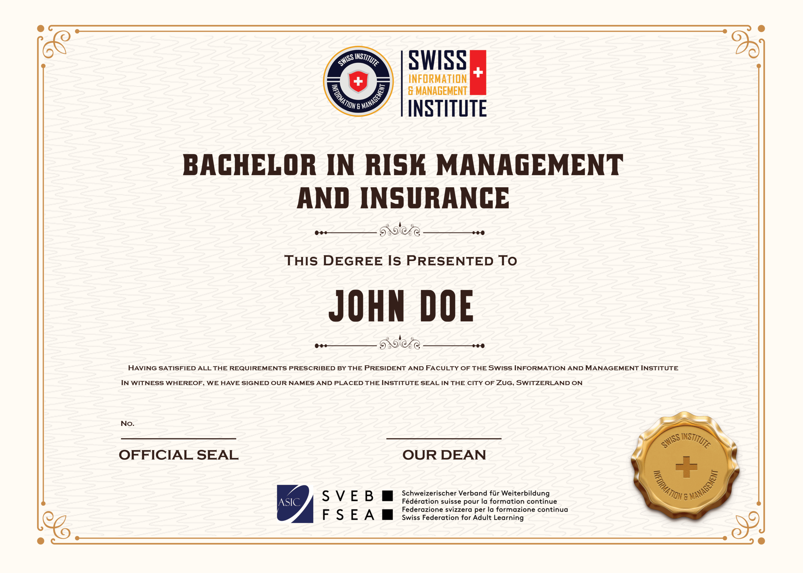 - Bachelor in Risk Management and Insurance từ SIMI Swiss