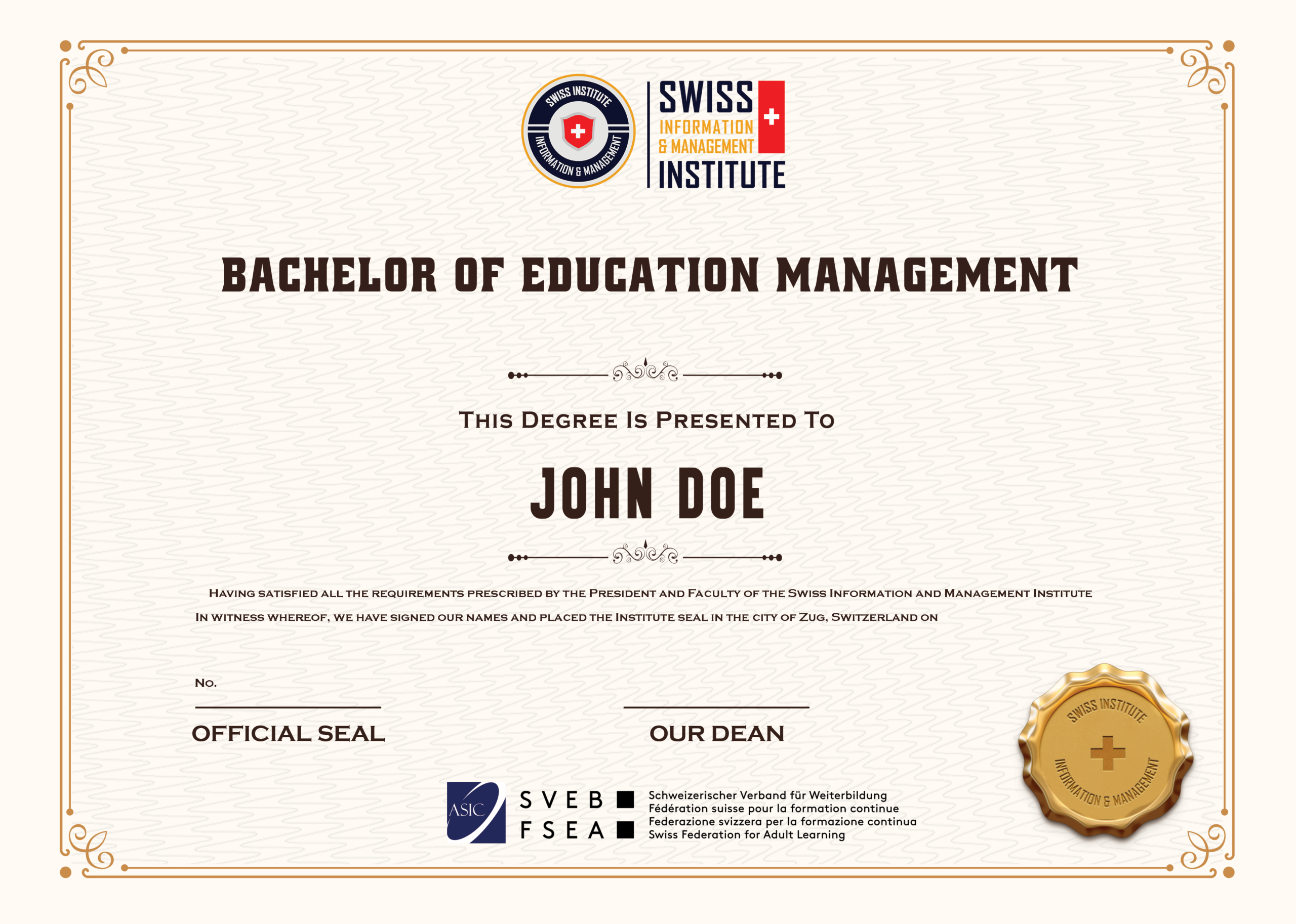 - Bachelor of Education Management – cấp bởi SIMI Swiss (Thụy Sĩ)