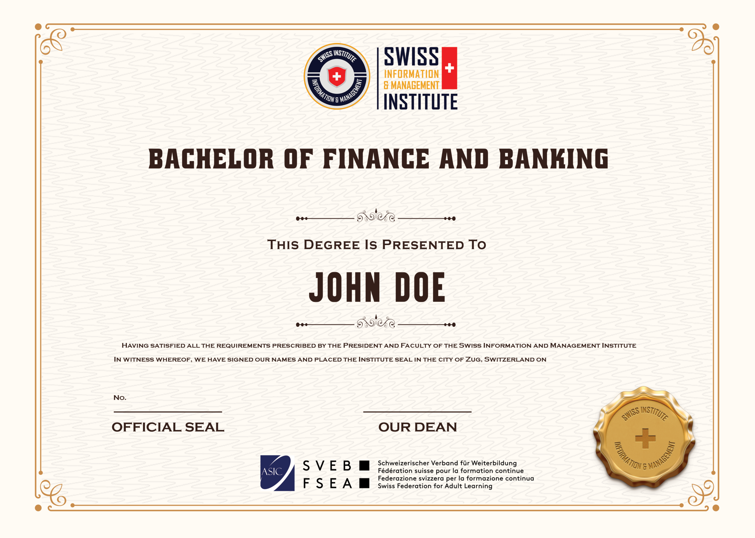 1. Bachelor of Finance and Banking – cấp bởi SIMI Swiss (Thụy Sĩ)