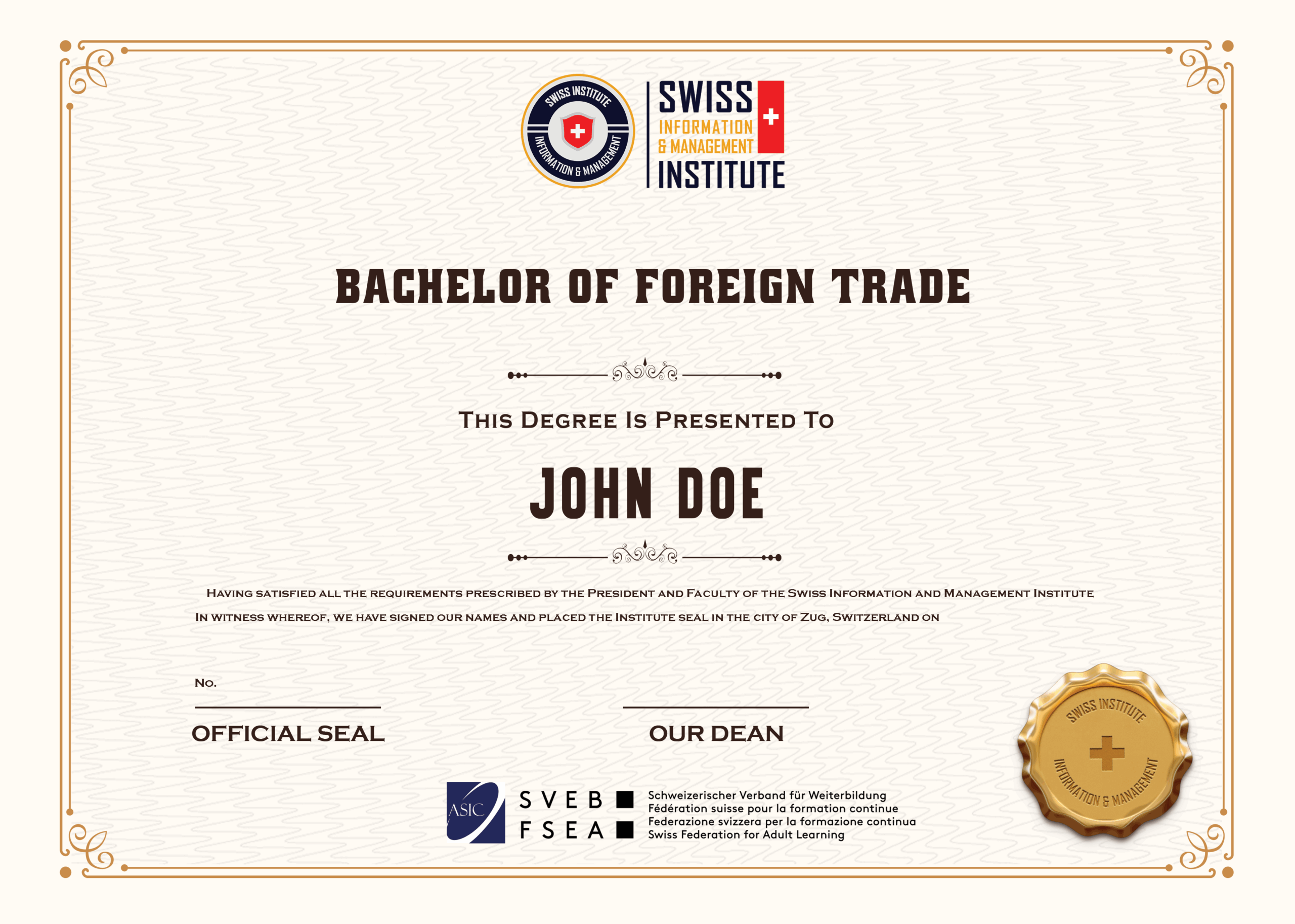 • Bằng mẫu Bachelor of Foreign Trade từ SIMI Swiss TẠI ĐÂY.