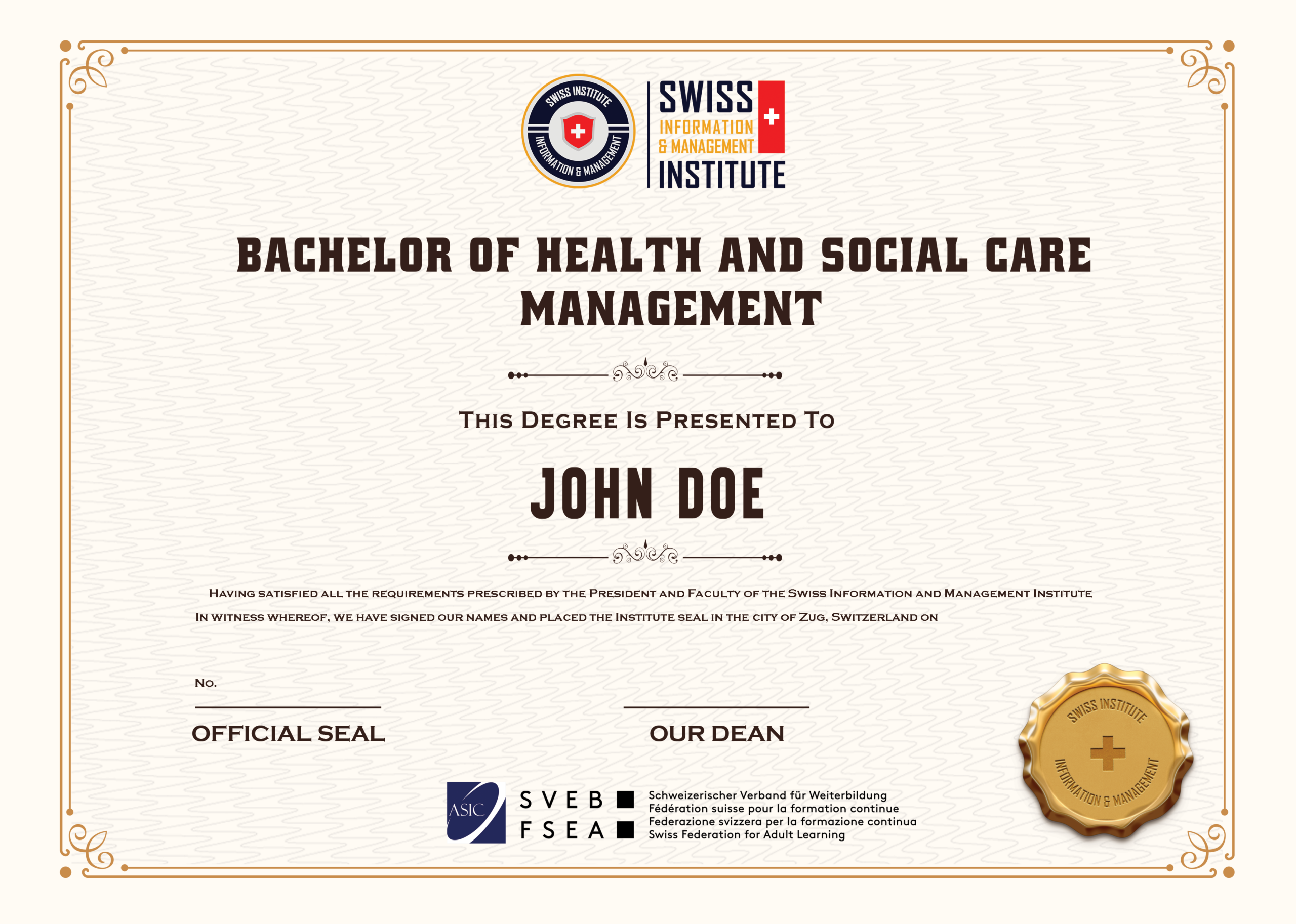 - Bachelor of Health and Social Care Management – cấp bởi SIMI Swiss (Thụy Sĩ)