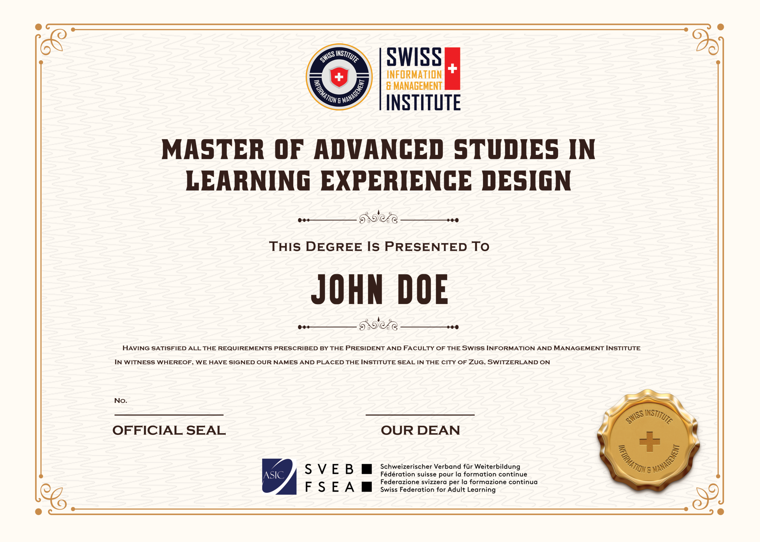 - Master of Advanced Studies in Learning Experience Design cấp bởi SIMI Swiss.