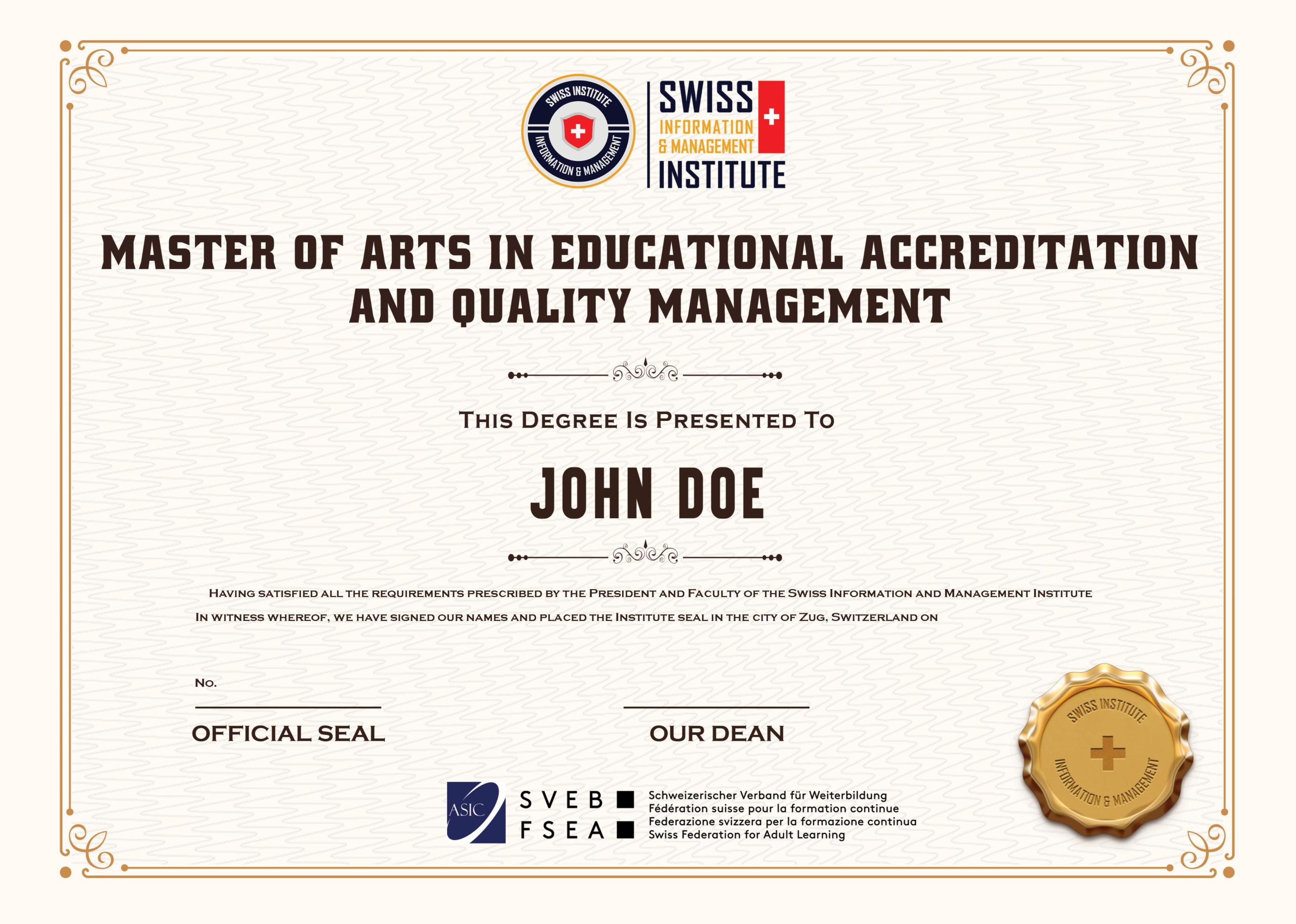 • Bằng mẫu Master of Arts in Educational Accreditation and Quality Management từ SIMI Swiss TẠI ĐÂY.