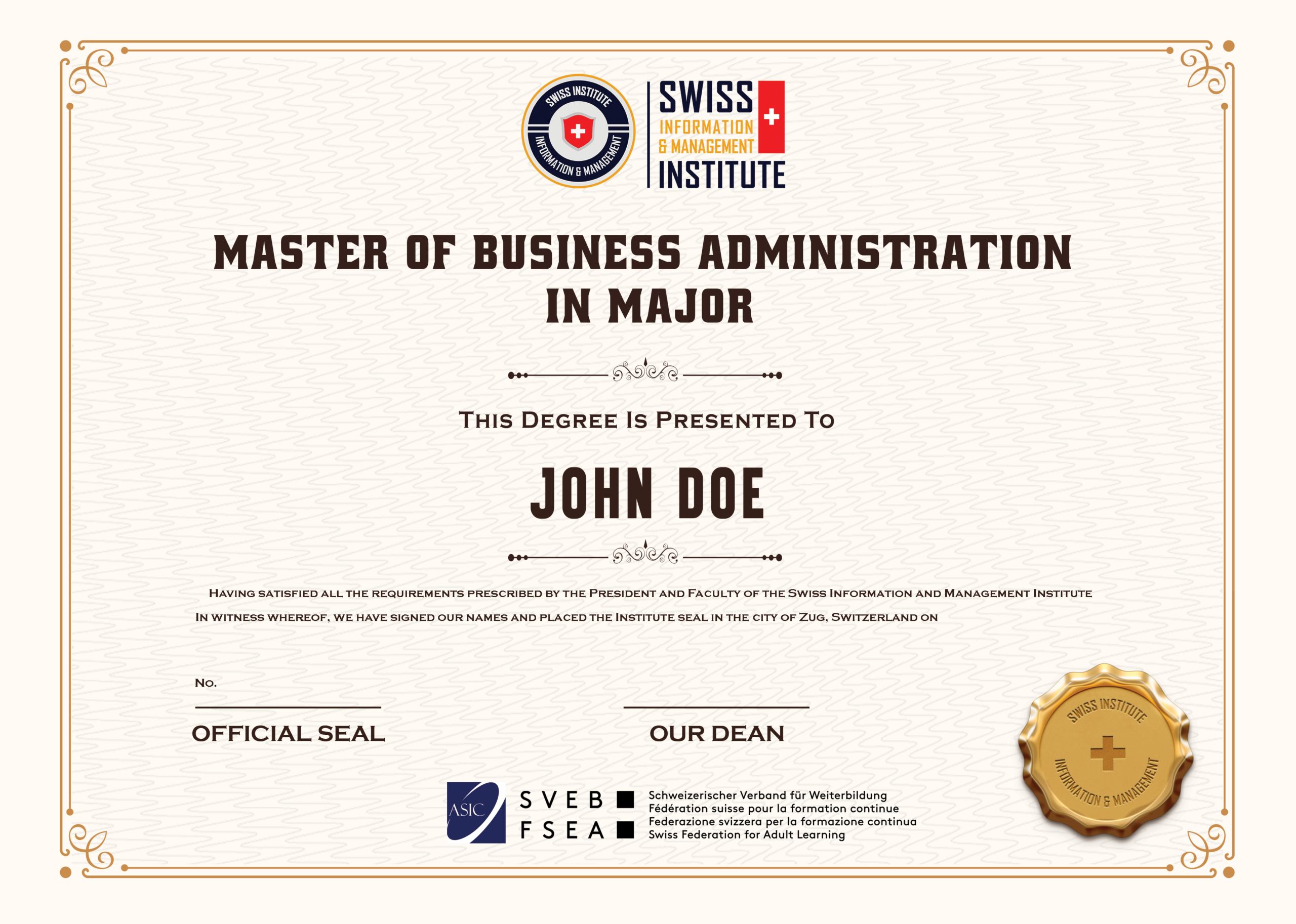 • Bằng mẫu Master of Business Administration in Major từ SIMI Swiss TẠI ĐÂY.